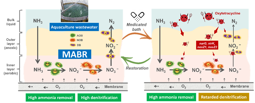 论文速递 | 漫画人 马金星教授课题组WR:分层生物膜结构驱动MABR实现水产养殖药浴废水高效除氨