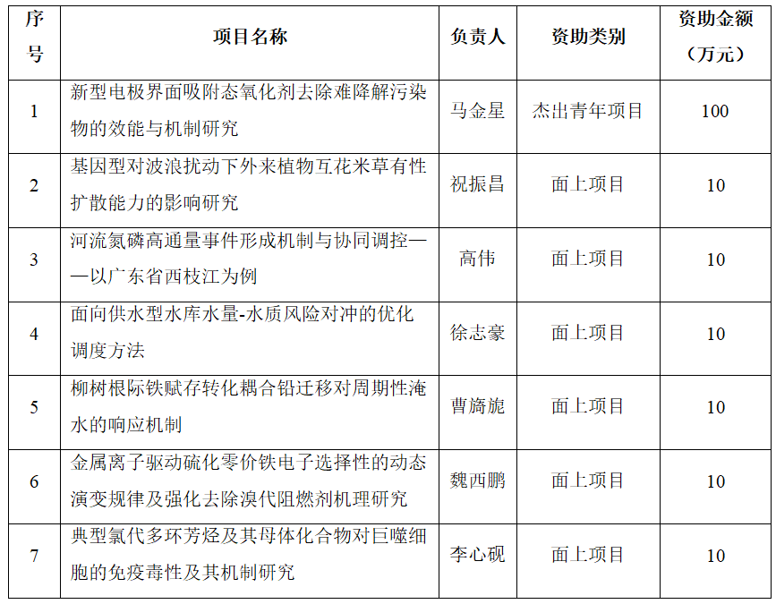环境生态工程研究院获批7项广东省自然科学基金项目