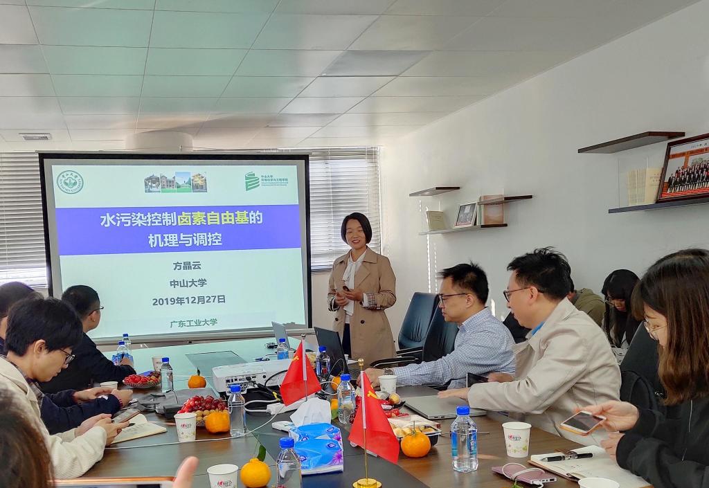 随即,方晶云副教授以“水污染控制卤素自由基的机理与调控”为专题作报告。方晶云副教授围绕卤素自由基(RHS)在水化学行为、污染物转化、毒性次生产物生成风险与控制等方面的作用,系统介绍了紫外/氯(氨)体系中RHS的化学机理及其在水污染控制中的应用。方晶云副教授详细介绍了探针法和模型法两种定量鉴别RHS浓度的新方法,揭示了RHS的生成与转化规律,介绍了RHS与含亲电官能团物质的选择性反应规律及不同类型RHS氧化产生卤代/非卤代产物的机制;最后,方晶云副教授指出通过自由基调控和参数优化,可以控制卤代产物的生成。