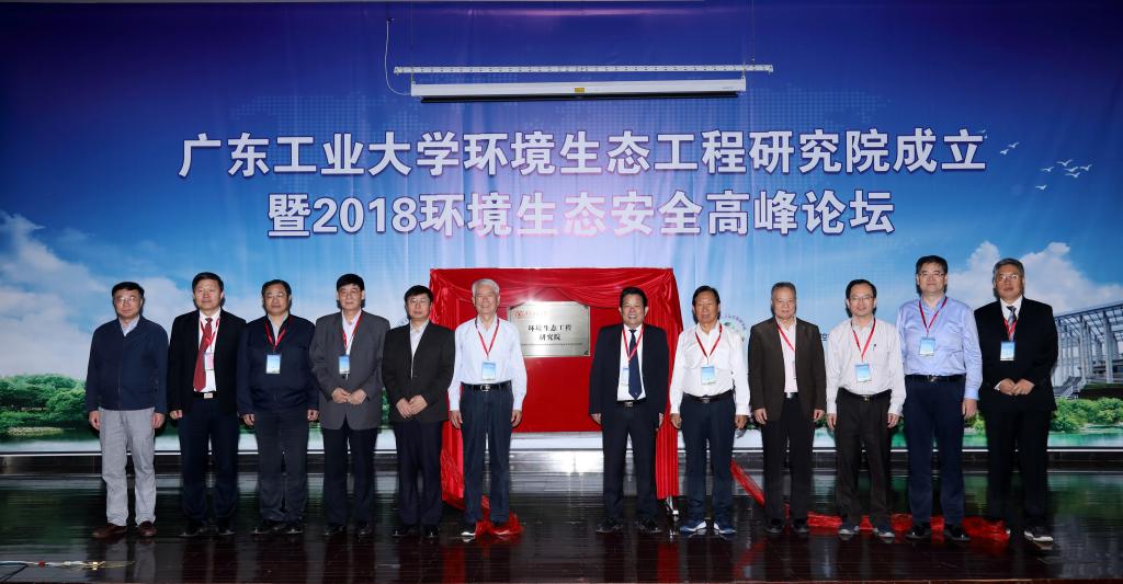 参加论坛的专家、嘉宾共同见证了环境生态工程研究院的成立,陈克复院士、侯保荣院士、侯立安院士、曲久辉院士、李华军院士和陈新校长为环境生态工程研究院揭牌。