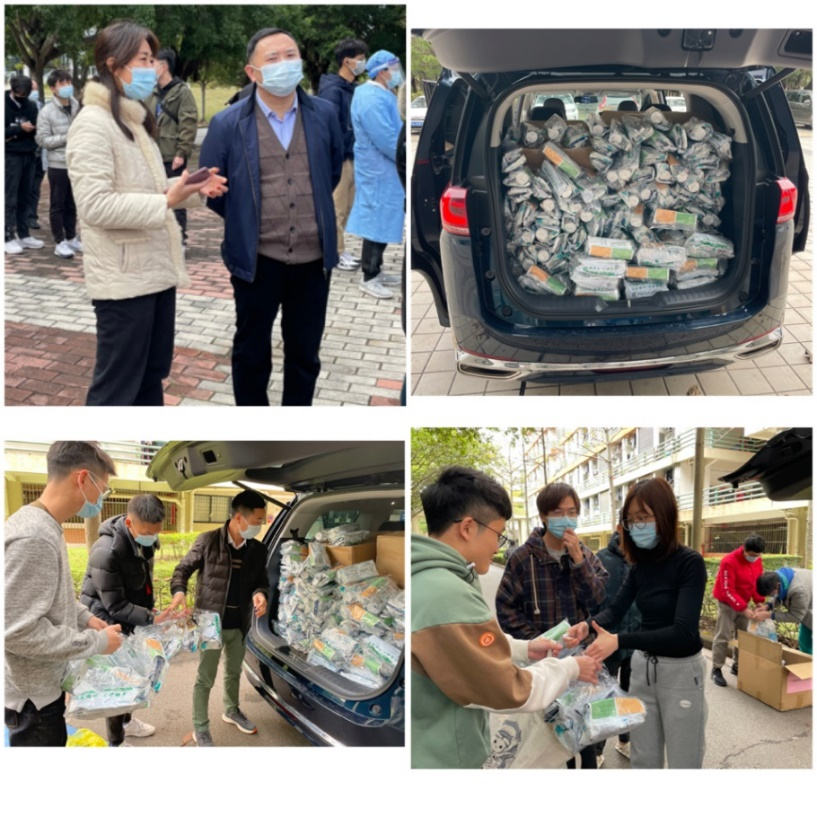 2月23日,为更好地应对疫情带来的挑战,保障学生的健康,曾志英书记及时前往核酸检测点指导学生工作,确保学生及时完成核酸检测,安排辅导员前往东西区宿舍楼下为学生们送去了包括口罩、消毒酒精等物资在内的爱心防疫包。