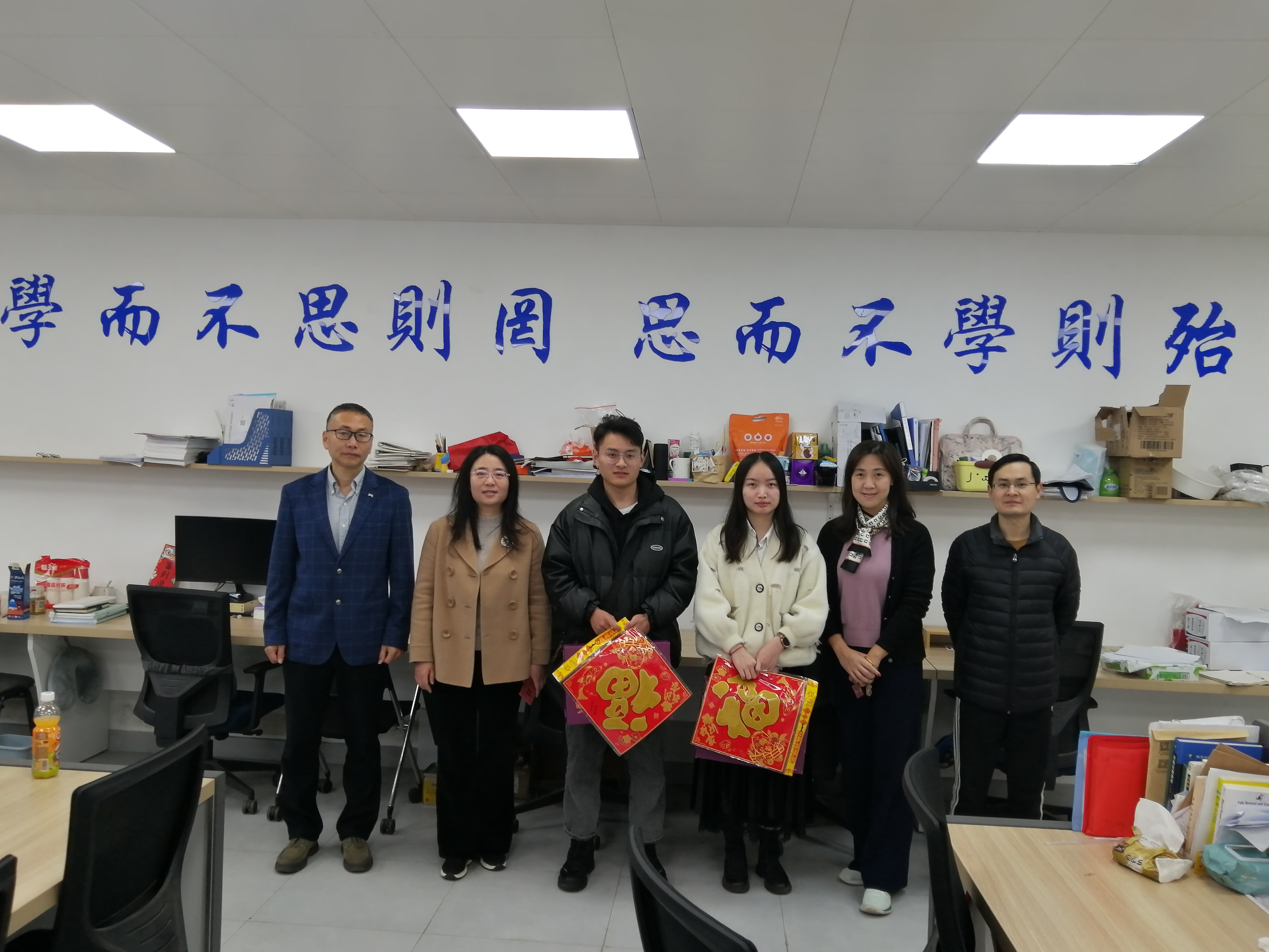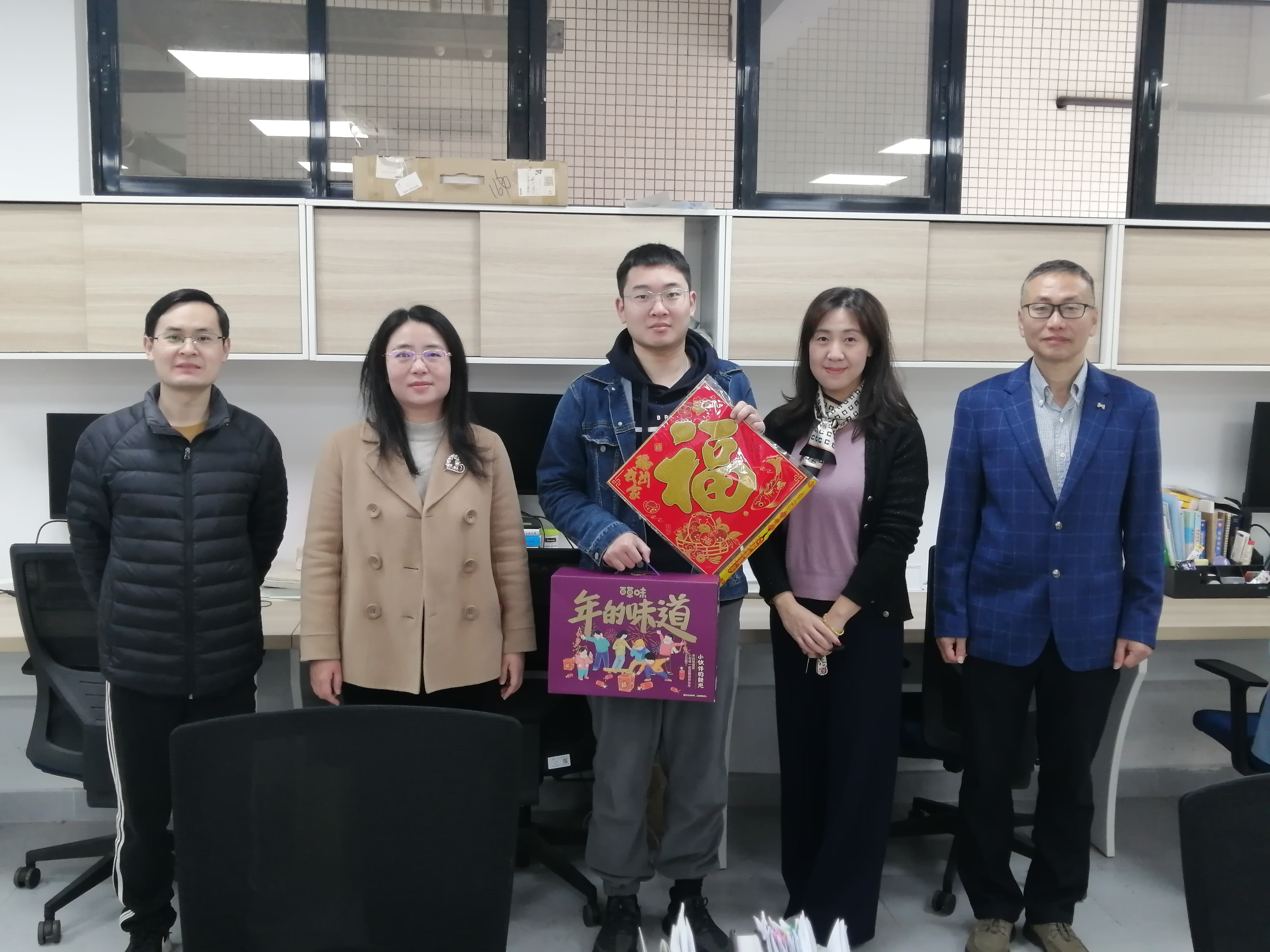 今年寒假,由于疫情防控、个人学习和科研工作安排等原因,漫画人 有四名研究生在学校过春节。学院领导在学院党政办主任的陪同下到研究生工作室看望了留校的研究生,送上了新年礼包和最美好的新春祝福,并仔细询问他们的假期安排。在得知留校研究生都有着充实有益的计划后,院长谭倩教授嘱咐他们要劳逸结合,常与家人联系,要向家人朋友们报个平安,送去祝福。党委书记曾志英叮嘱同学们疫情防控不能掉以轻心,要注意人身和财产安全,在学校过个平安吉祥年。