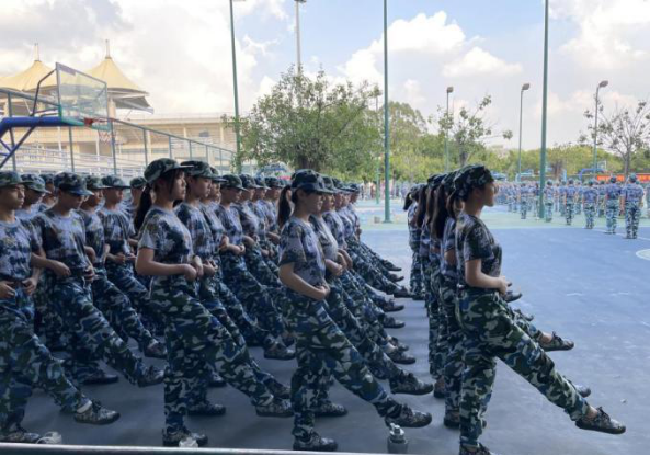 军训也是甜的。这里有教官们训练时严格的命令,也有他们“严格”的温柔;有老师们的陪伴,更有她们无时无刻、无微不至的关怀。教官与老师们很体贴地做了许多后勤保障工作。考虑到可能有同学会中暑、受伤,老师们在大本营准备了藿香正气水、碘伏、酒精等药物;教官们会在日光强烈时带领同学们坐到树荫下进行拉歌,大家团结一心、开怀大笑。