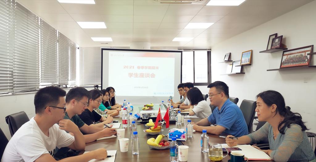 6月30日下午,环境生态工程研究院2021年春季学期期末学生座谈会在科技北楼503A会议室召开。常务副院长蔡宴朋教授、副院长何頔教授、研究生辅导员卢耀斌副教授和学生代表共同参会。会议由副书记曾志英主持。