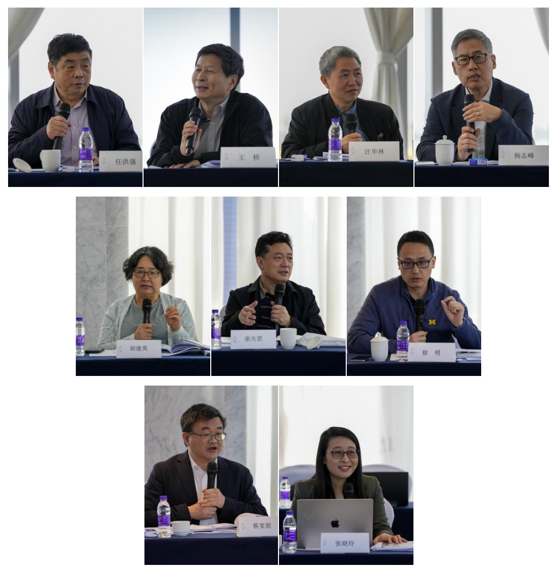 学术委员会成员讨论(第一排从左到右依次为任洪强院士、王桥院士、汪华林院士、杨志峰院士;第二排依次为胡建英教授、栾天罡教授、徐明教授;第三排依次为蔡宴朋教授、张晓玲教授)