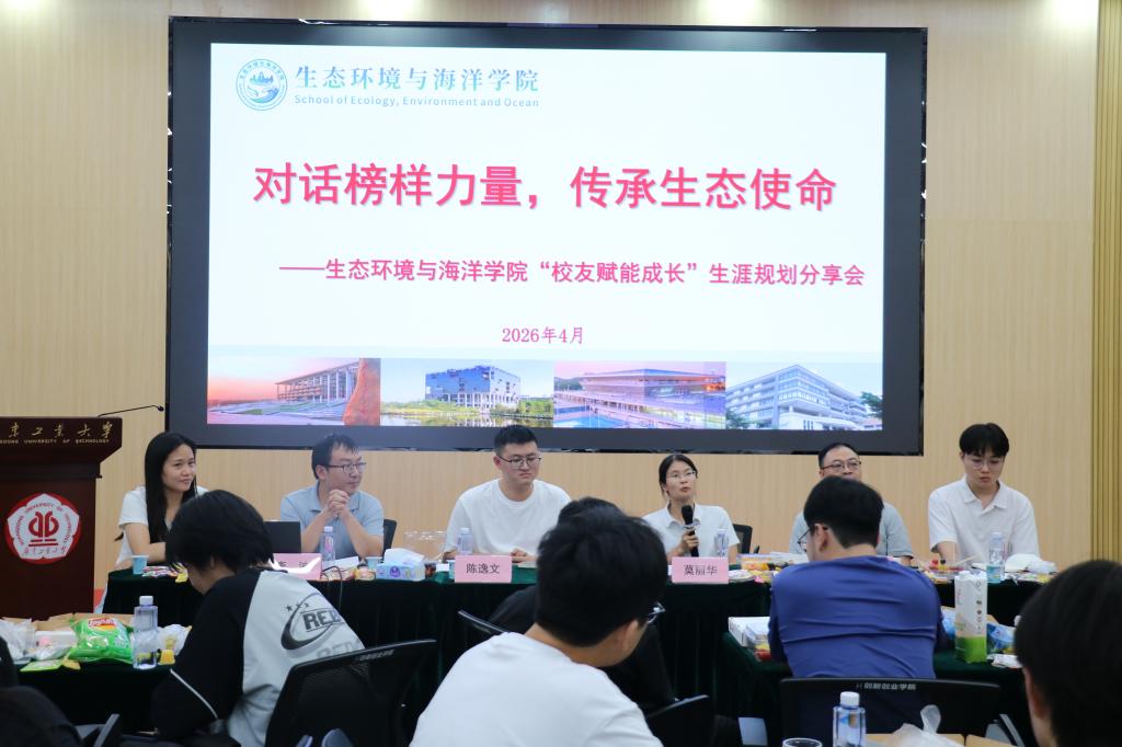 随后,莫丽华作“从校园到职场——环境生态专业就业与成长路径”主题演讲,结合自身十余年的从业经历,系统分享了生态环境科研领域的发展趋势、核心岗位能力要求以及职业晋升路径。她特别强调了在校期间夯实专业基础、积极参与科研项目的重要性,鼓励同学们主动关注行业动态,培养解决实际问题的能力;陈逸文围绕“团结、经历、方向、心态”四大核心维度,结合自身多元化的职业轨迹,生动讲述了专业学习与岗位实践的衔接经验,分享了求职面试的技巧与心得,建议同学们尽早明确发展方向,有针对性地提升综合素质。