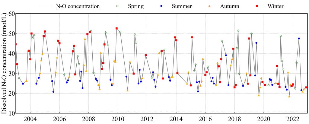 图2. 2003至2022年珠江口N2O浓度的时间变化