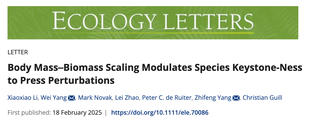 牵头完成,李晓晓博士为论文第一作者(现为英国谢菲尔德大学博士后),杨志峰院士与北京师范大学杨薇教授共同通讯,合作者包括中国农业大学赵磊副教授、德国波茨坦大学Christian Guill教授、荷兰阿姆斯特丹大学Peter de Ruiter教授,以及美国俄勒冈州立大学Mark Novak教授。