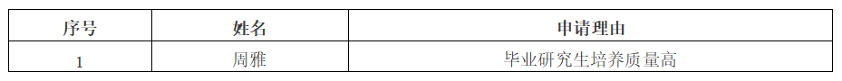 按照学校《关于评选2022年度优秀研究生导师的通知》,经个人申请,学院党组织审核及学位评议组评选,决定推荐周雅老师为优秀研究生导师,现予以公示。如有意见,请实名反馈,并提供相关理由。