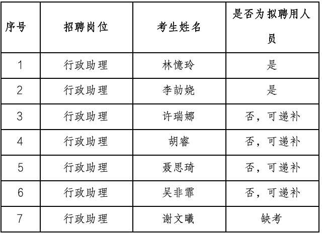 经公开报名、资格审核、考试等工作程序,现将拟聘用人员予以公示(见附件)。