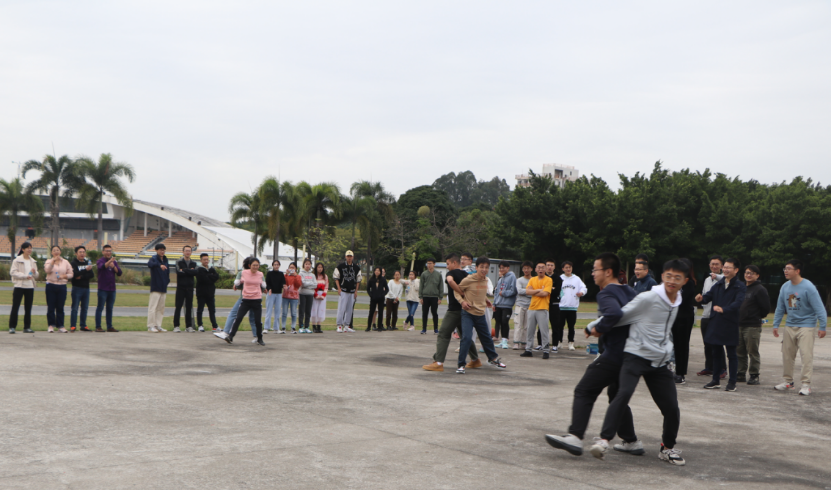 在进行了简短动员后,老师和学生们的积极性被快速调动了起来,趣味运动会也正式拉开了序幕。为了让大家以放松的心态参与活动,首先进行的是破冰环节,经过几轮破冰游戏之后,正式进入比赛项目。