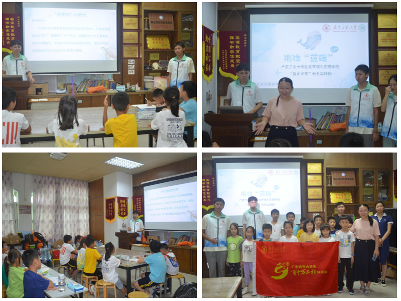 实践团联系当地优秀企业“名儒教育”,为乡村新业态务工人员子女讲解海洋生态系统蓝碳课程,以全球变暖、温室效应为切入点,帮助小朋友们理解我国“双碳”目标的含义。课程穿插各种生态知识小游戏,有效调动孩子们的学习积极性,取得了良好效果,鼓励学生与家长绿色出行,保护地球家园,宣传生态环保理念。