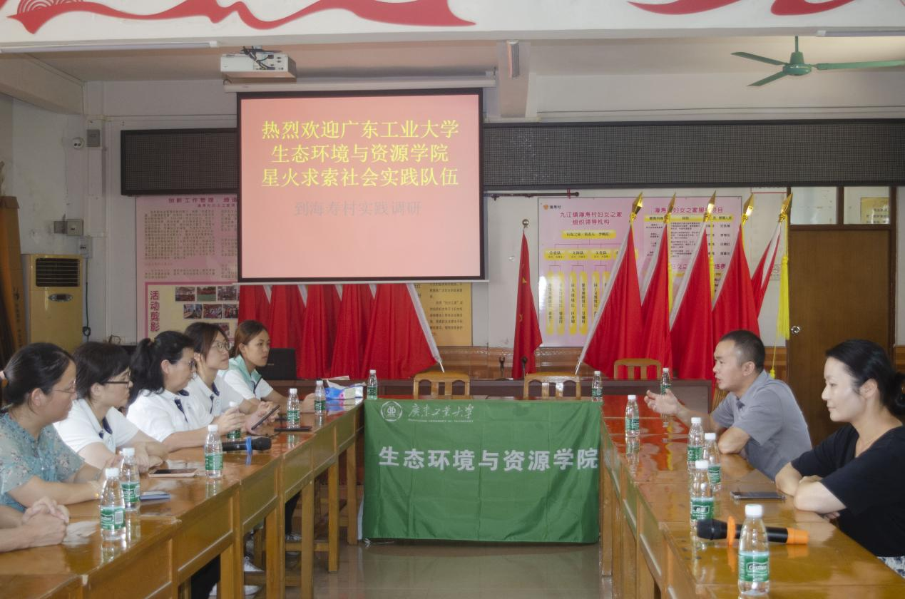 党委副书记武慧娟、教授杜青平、辅导员章莹和全体队员前往海寿村村委,就海寿岛生态产业振兴问题与当地村委开展探讨交流,海寿村党委书记区发洪、副书记区伟昌、委员李映霞参与了此次座谈。双方展开深入讨论,前瞻了在海寿岛上发展生态产业的可行性。本次座谈探讨了海寿岛突破当前发展困局的新思路,进一步明确了实践团的工作任务。