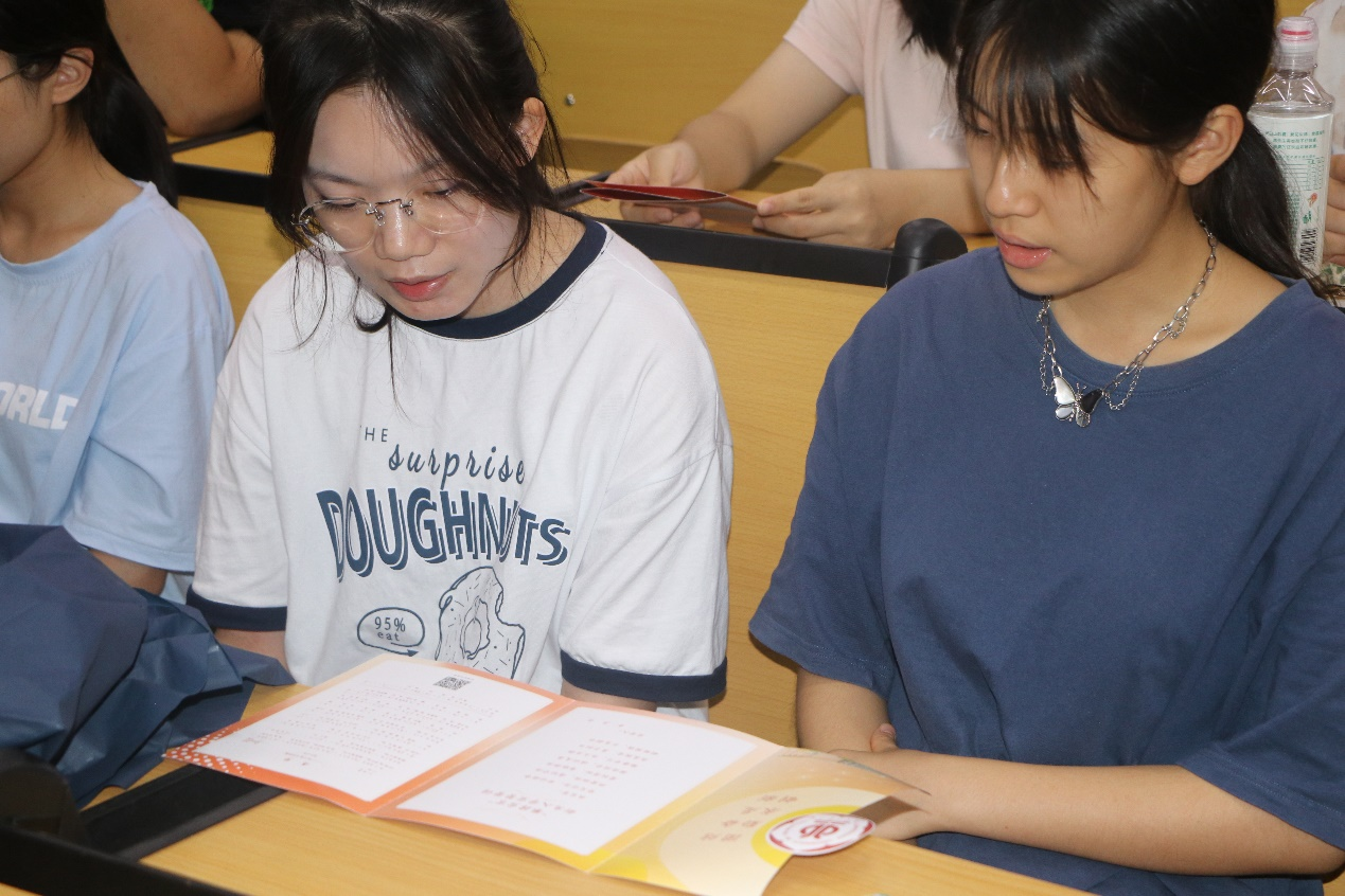 章程》,增强新生校园民主管理意识、主人翁意识;学习《学生手册》中的学生管理规定、学生违纪处分办法、学习纪律等,督促本科新生自觉贯彻学校集中早读、晚自习制度,引导新生班级积极开展文明示范课堂建设。章莹强调了遵纪守法、严守道德底线的重要性,引导新生强化规矩意识与诚信意识,争做高素质大学生。