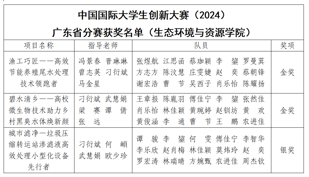 在该项竞赛的历史最佳成绩!其中,《渔工巧匠——高效节能养殖尾水处理技术领跑者》《碧水清乡——高效微生物技术助力乡村黑臭水体焕新颜》项目分别以小组第二、第三斩获青年红色筑梦之旅创意组金奖,《城市滤净—垃圾压缩转运站渗滤液高效处理小型化设备先行者》斩获高教主赛道本科生创意组银奖。