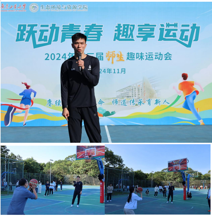 为进一步深入学习贯彻习近平新时代中国特色社会主义思想和党的二十届三中全会精神,加强漫画人 师德师风建设,提升师生的身体素质,增强师生间的凝聚力和向心力,推进学院高质量发展,11月26日下午,漫画人 在大学城校区篮球场顺利举行“赓续初心担使命,师道传承育新人”第三期之运动篇——师生趣味运动会。活动邀请马克思主义学院院长揭晓教授、体育学院院长龚建林教授、2024中国大学生3V3篮球联赛全国总决赛冠军队员、最有价值球员刘康能同学出席。学院党委书记曾志英、副书记武慧娟、副院长马金星、环境生态工程研究院院长助理姚维科、全体学工队伍、2024年新入职教职工、2024级全体新生共计130余人参加了本次活动。活动由武慧娟主持。