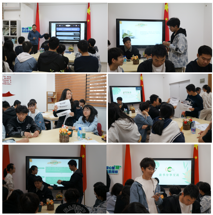 书香智趣,寓学于乐。活动伊始,通过采用互动游戏的形式,将读书分享和趣味游戏结合起来。通过“读书人格测试”、“知识盲盒挑战”、“金句拼图”、“场景再现”、“以书会友”等互动环节,让同学们认识感悟不同的经典名句、阅读方法以及实用学习技巧等,现场笑声与掌声不断。特别是小组之间协作还原励志名句,并将其转化为行动宣言,如“每日阅读30分钟”;还有相互配合演绎《三体》、《活着》等经典片段,用创意表演传递文学魅力,真正做到知行合一。
