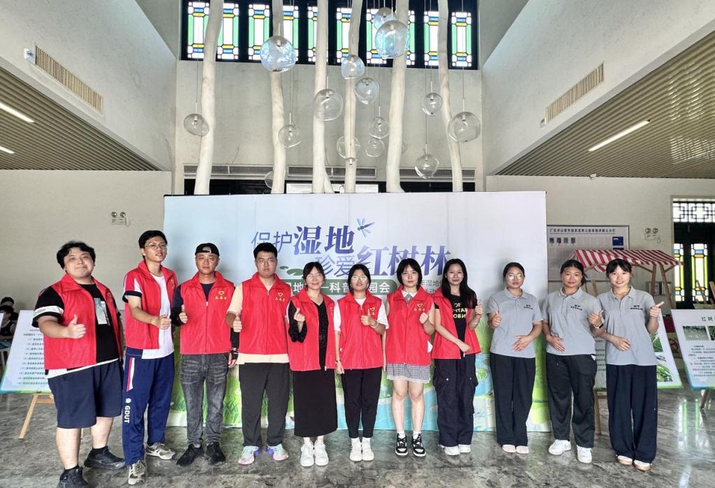 一周的实践,队员们体验了从学生到生态讲解员的角色蜕变,运用专业知识为湿地生态“把脉问诊”,让湿地保护的种子在众多游客心中生根发芽。另一方面,翠亨湿地的蓬勃生机为青年学子提供了最生动的课堂,让队员们体验到青春的活力与生态振兴的理念的同频共振。大学生们用行动证明:当专业知识邂逅赤诚热爱,青春力量会深深扎根于大地,绿色的希望便能在湿地滩涂上不断萌发、生长。这是一场湿地守护与青春成长的双向奔赴。