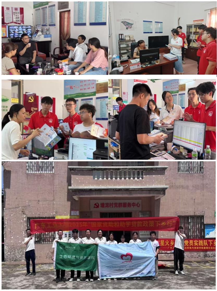 为扩大政策宣传覆盖面,让更多潜在受益群体知晓国家资助政策,章莹、欧少珍与实践团成员同江门市恩平市圣堂镇副镇长刘壤蔚、圣堂镇塘龙村委会书记吴素霞交流,紧密依托村镇阵地优势,强化校地协作,通过村委持续发放宣传材料,扩大政策宣传面。同时,在村委会门口设立咨询站,发放国家资助政策宣传手册、申请指南等材料,供村民随时查阅咨询,摸清当地发展实情与国家资助金和贷款需求,确保资助和贷款政策信息在基层持续可及、长效传播,切实巩固政策下乡成效。