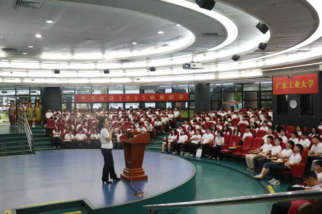 为引导新生深入了解校史校情、厚植爱校荣校情怀,积极向党组织靠拢,9月12日下午,学院党委副书记武慧娟在科技南楼报告厅为2025级本科新生作校史校情介绍、入党启蒙教育专题讲座,号召同学们以行动书写信仰,在青春赛道上跑出“广工加速度”。