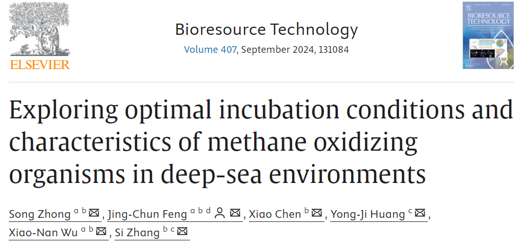 杨志峰院士、张偲院士团队冯景春教授课题组在BioresourceTechnology发表题为“Exploring optimal incubation conditions and characteristics of methane oxidizing organismsin deep-sea environments”的最新成果,第一作者为2021级博士研究生钟松,通讯作者为冯景春教授。