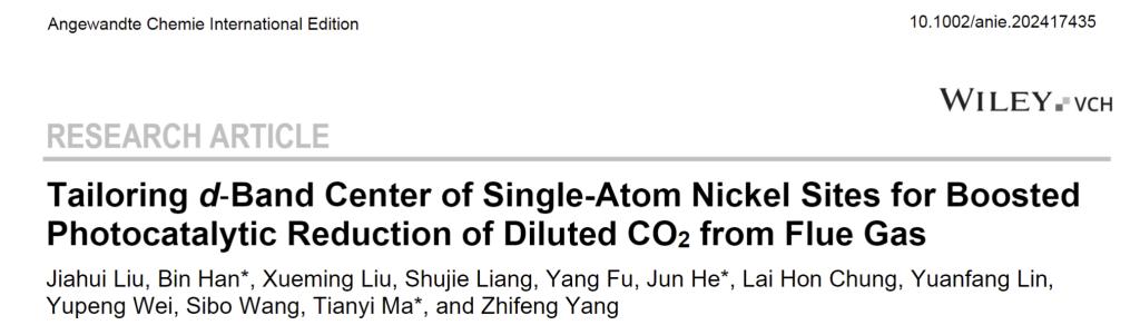 韩彬教授课题组在化学领域旗舰期刊Angew. Chem. Int. Ed.发表题为“Tailoring d‑Band Center of Single-Atom Nickel Sites for Boosted Photocatalytic Reduction of Diluted CO2from Flue Gas”的研究论文。韩彬教授,我校轻工化工学院何军教授和澳大利亚皇家墨尔本理工大学马天翼教授为论文通讯作者,漫画人