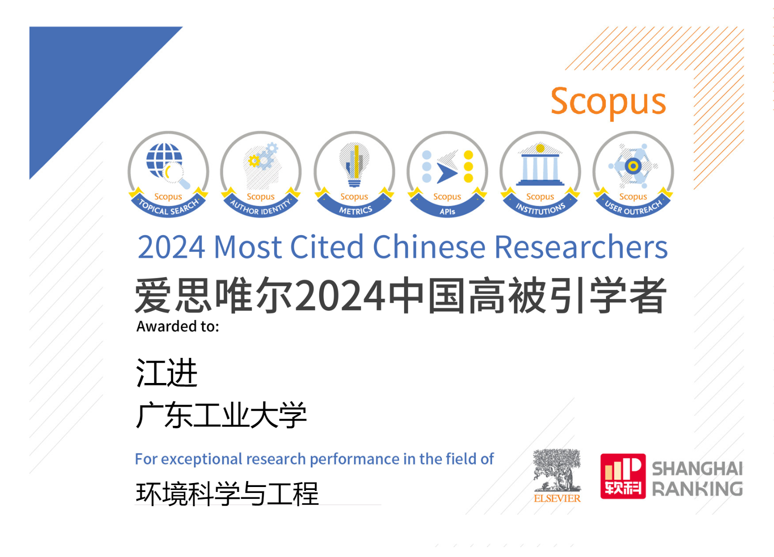 杨志峰院士、江进教授继续蝉联年度中国高被引学者。