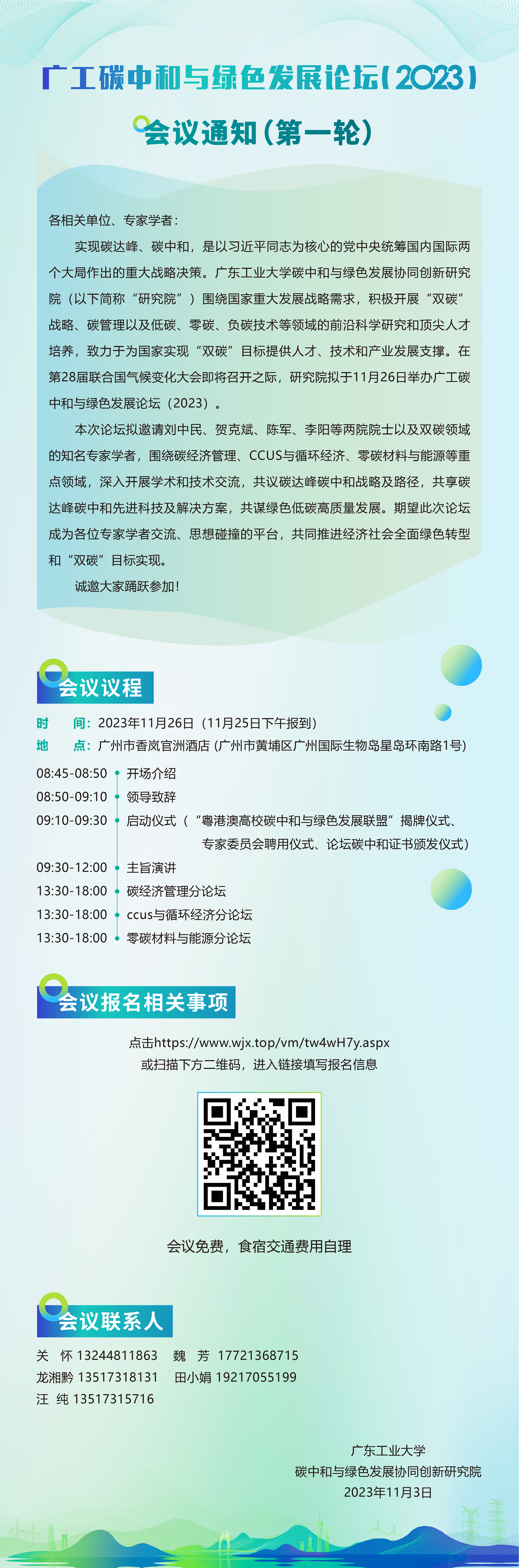 【会议通知】广工碳中和与绿色发展论坛(2023)会议通知