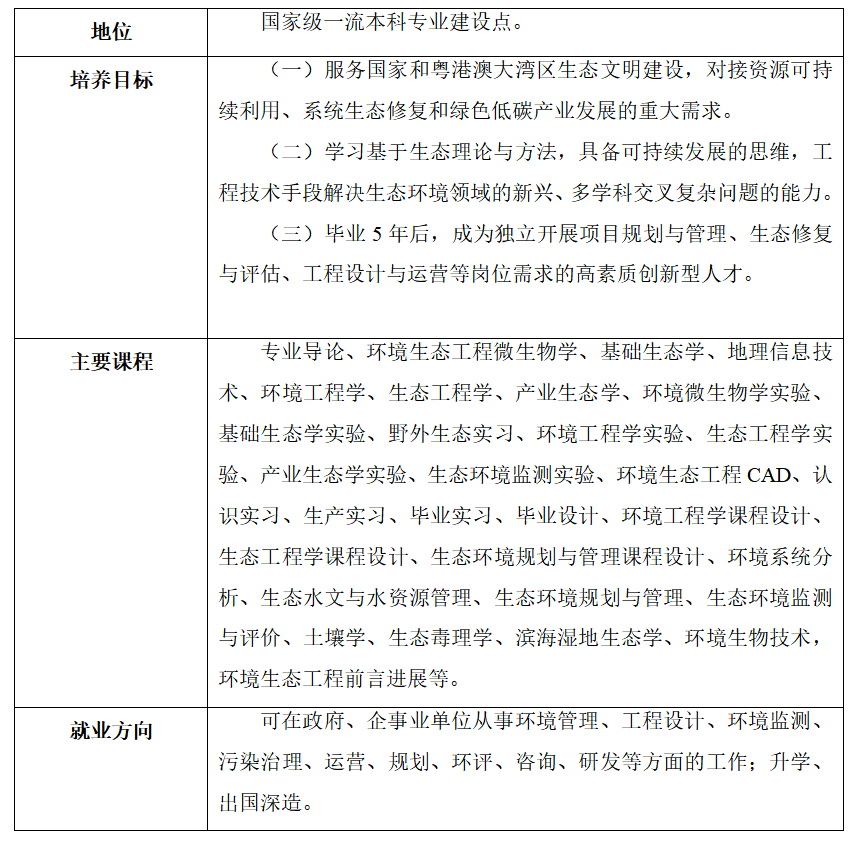 (一)环境生态工程(本科)